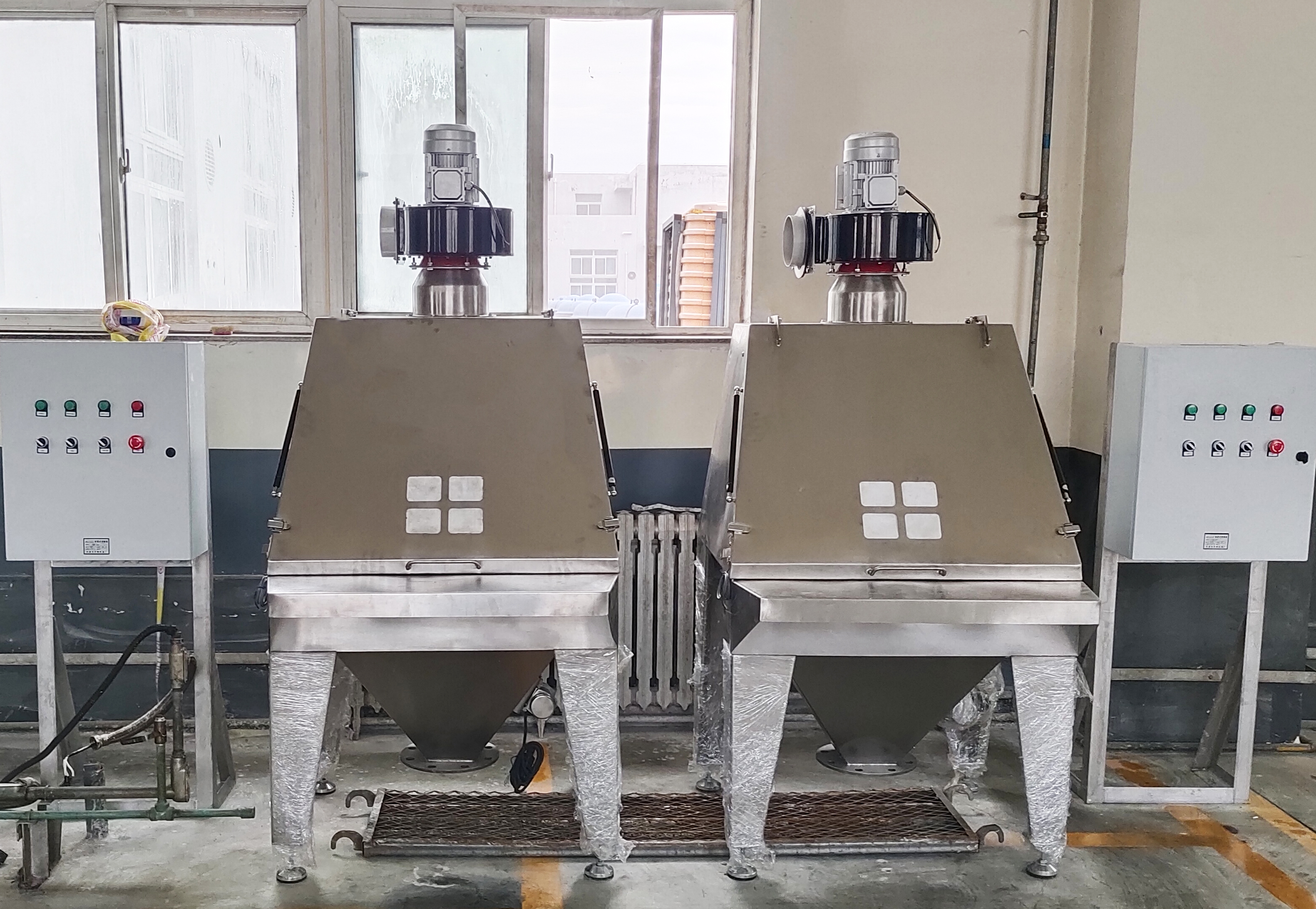工作原理: 無塵投料站的工作原理是投料時產生的物料粉塵被離心風機或抽氣管道形成的負壓吸到過濾系統中,使物料與空氣分離,防止粉塵四散逃逸、污染周圍環境和保護操...